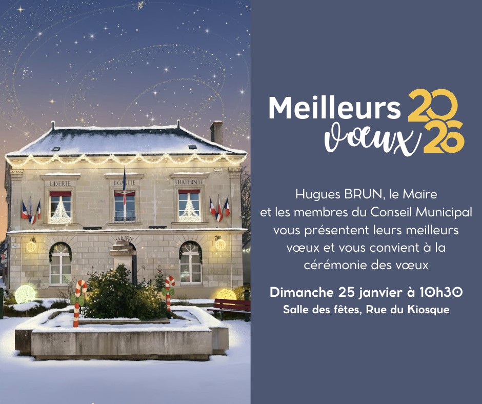 La cérémonie des voeux du Maire se tiendra le dimanche 25 janvier 2026 à 10h30 à la salle des fêtes.